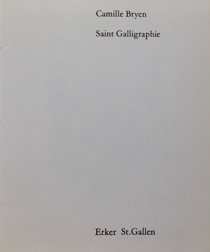 BRYEN (Camille) Saint Galligraphie. St. Gallen, Erker, 1967.