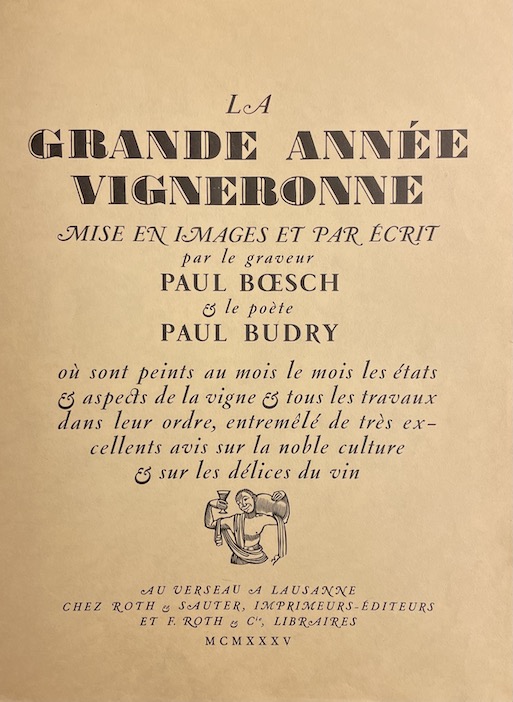 BUDRY (Paul) & BOESCH (Paul) La grande année vigneronne. Lausanne, Roth & Sauter, 1935.