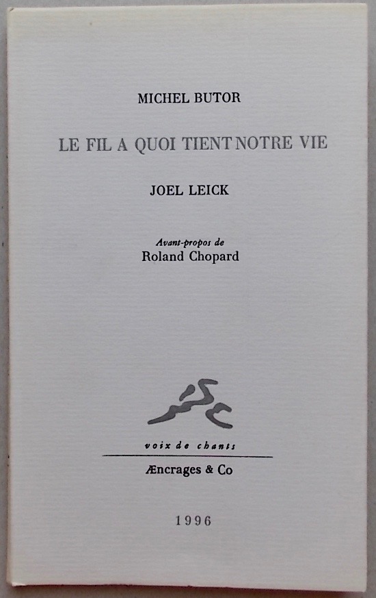 BUTOR (Michel) Le fil à quoi tient notre vie. Xonrupt-Longemer, AEncrages & Co, 1996.
