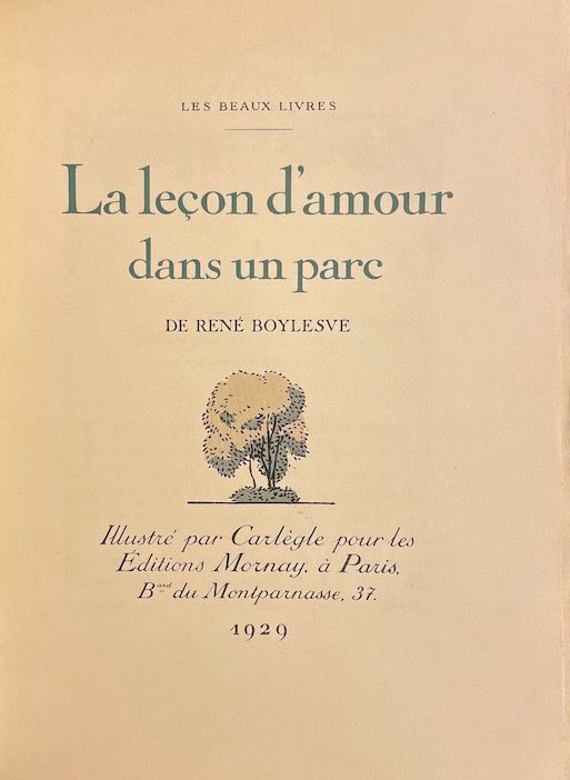 [CARLEGLE] – BOYLESVE (René) La leçon d’amour dans un parc. Paris, Mornay (coll. Les beaux livres), 1929.