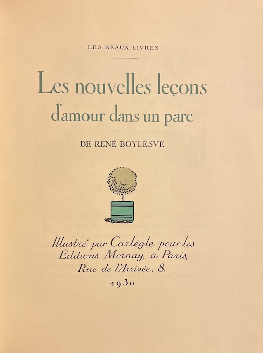 ![[CARLEGLE] - BOYLESVE (René) Les nouvelles leçons d'amour dans un parc. Paris, Mornay (coll. Les beaux livres), 1930.](https://cabinetamateur.ch/wp-content/uploads/2025/12/42090_1.jpg)