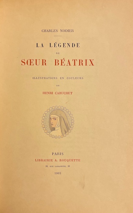 [CARUCHET] – NODIER (Charles) La légende de Soeur Béatrix. Paris, Librairie A. Rouquette, 1903.