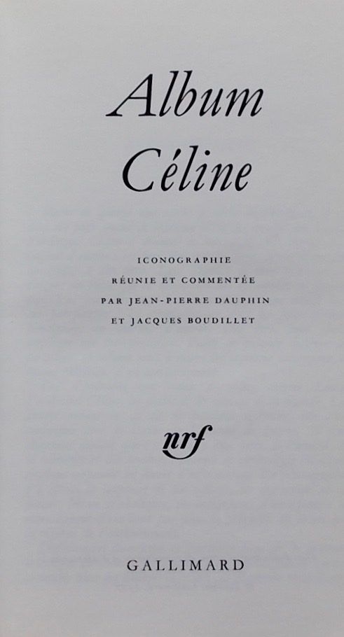 ![[CELINE] - DAUPHIN (Jean-Pierre) & BOUDILLET (Jacques) Album Céline. Paris, Gallimard (coll. Album de la Pléiade), 1977. – Image 2](https://cabinetamateur.ch/wp-content/uploads/2025/12/38997_2.jpg)
