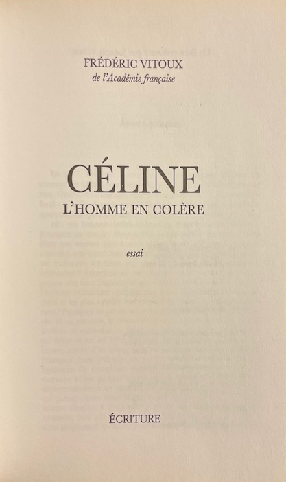 ![[CELINE] - VITOUX (Frédéric) Céline, l'homme en colère. Paris, Ecriture, 2008. – Image 3](https://cabinetamateur.ch/wp-content/uploads/2025/11/31129_3.jpg)