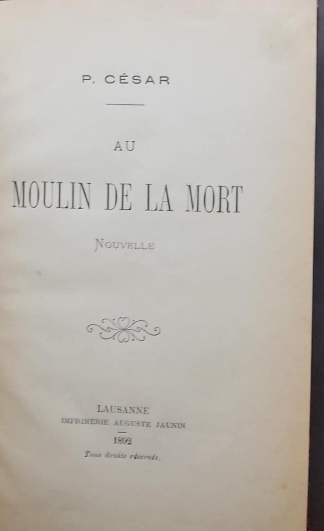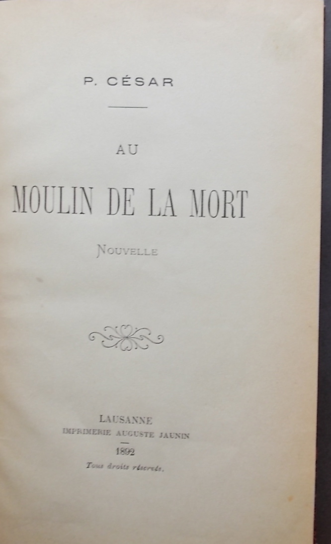 CESAR (Pierre) Au moulin de la mort. Nouvelle. Lausanne, Imprimerie Auguste Jaunin, 1892.