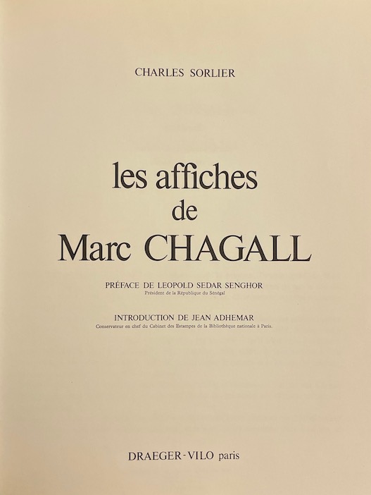 Catalogue raisonné des affiches de Chagall. Préface de Leopold Sedar Senghor. Introduction de Jean Adhemar. Illustrations en couleurs pour les affiches originales, et en noir pour celle en procédé photographique. Une date en page de garde, sinon en parfaite condition.