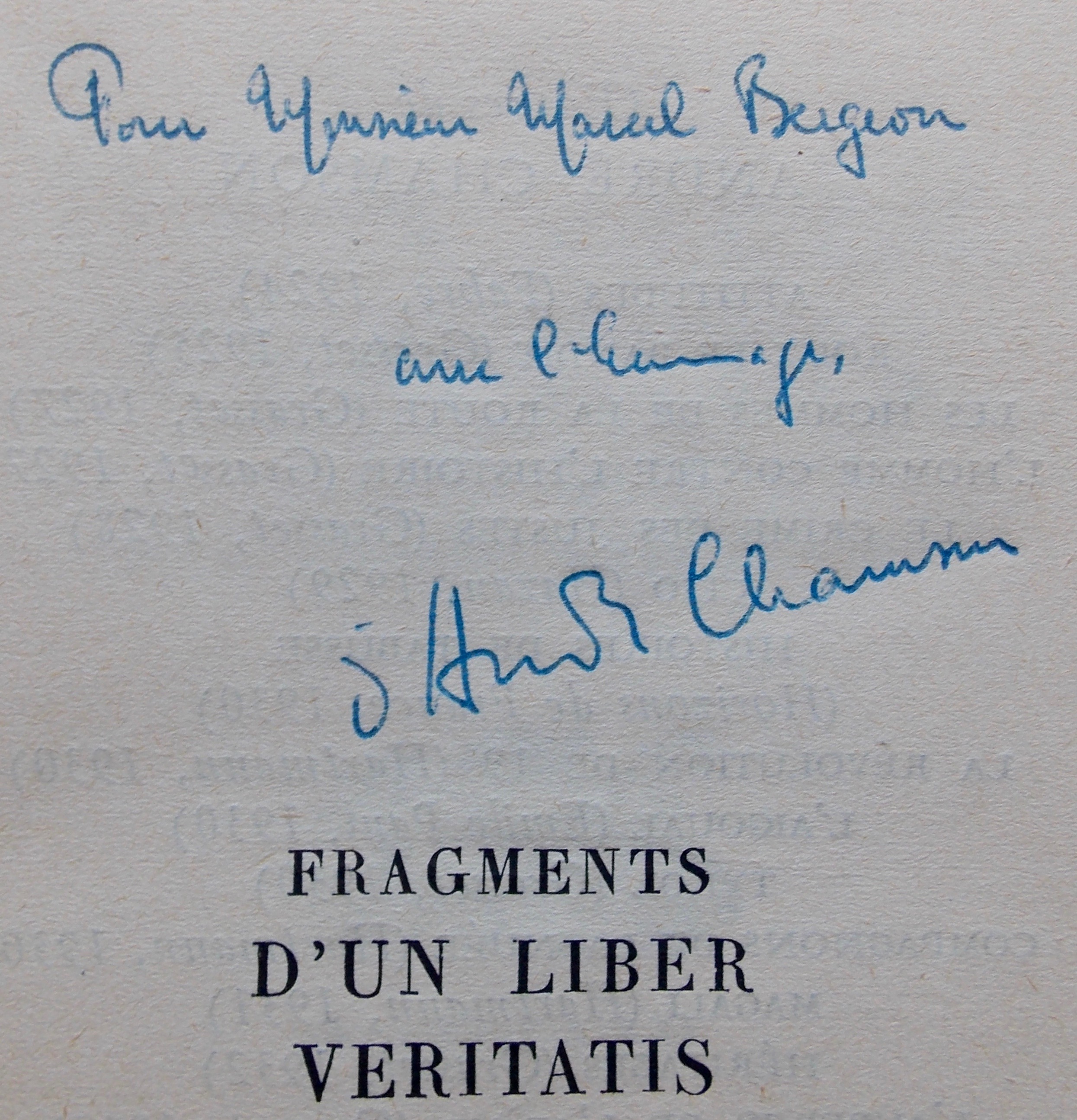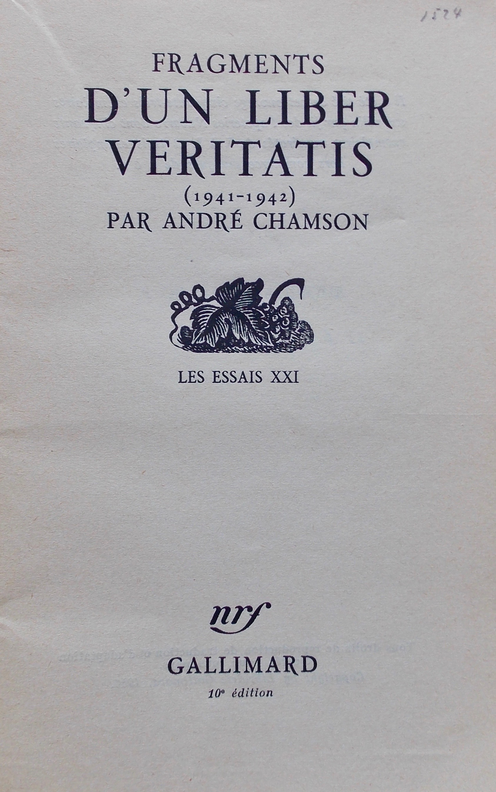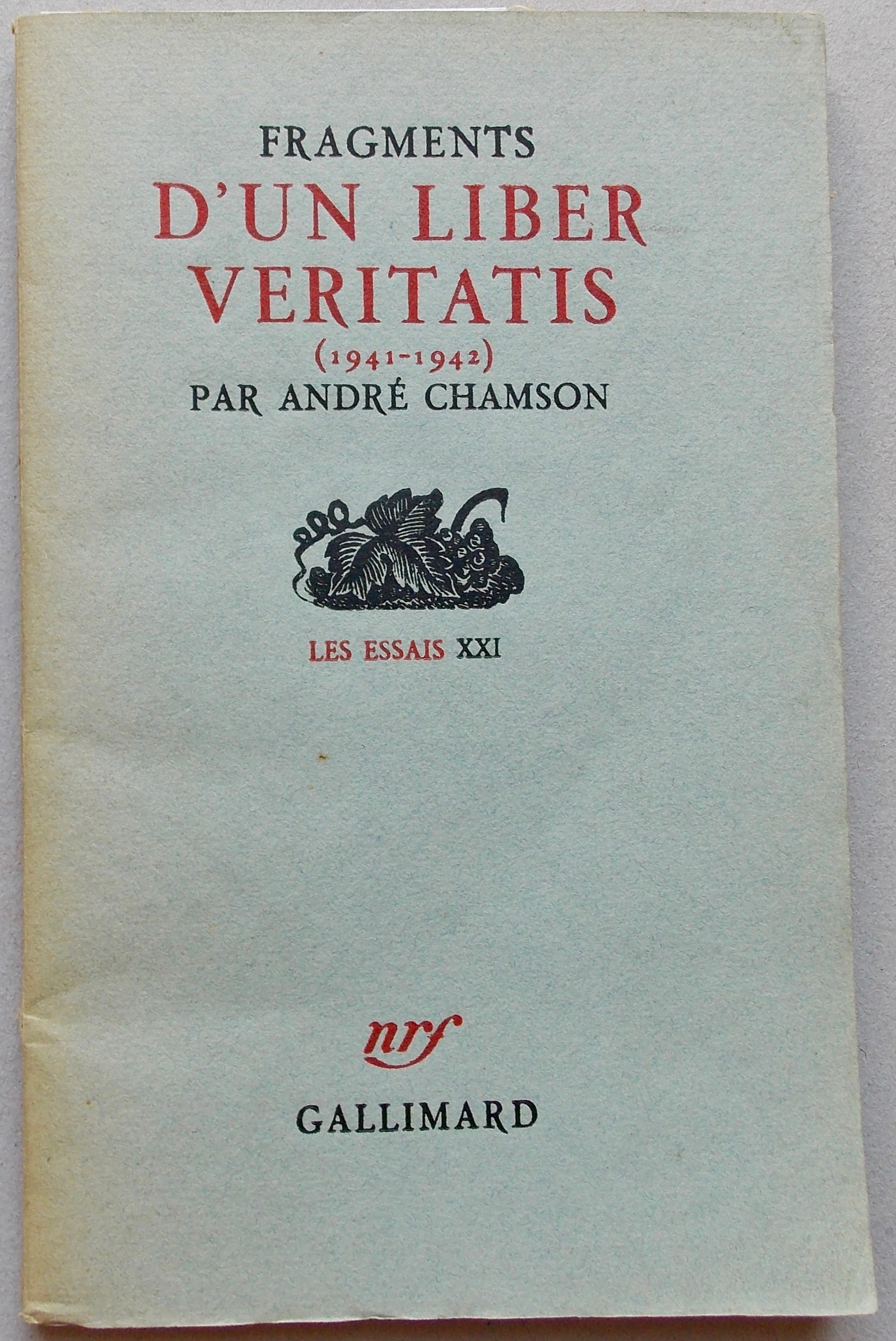 CHAMSON (André) Fragments d’un liber veritatis (1941-1942). Paris, Gallimard (coll. Les essais XXI), 1946.