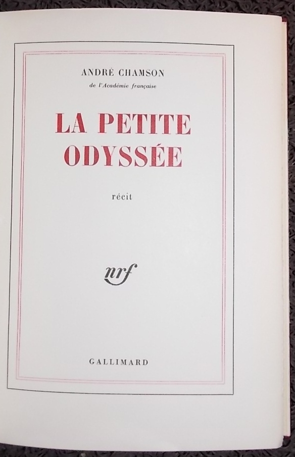CHAMSON (André) La petite Odyssée. Paris, Gallimard (coll. Blanche), 1965.