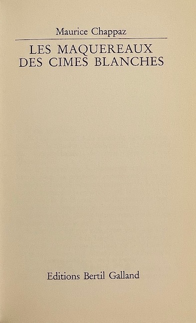 CHAPPAZ (Maurice) Les maquereaux des cimes blanches. Vevey, Bertil Galland (coll. Jaune soufre), 1976.