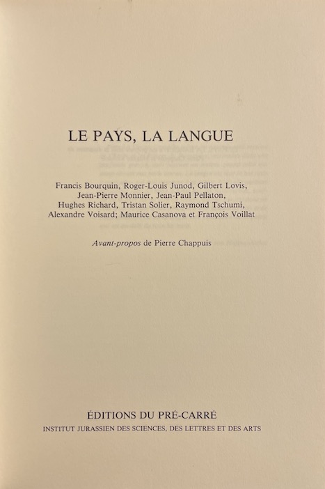 CHAPPUIS (Pierre) & RICHARD (Hughes) [dir.] Le pays, la langue. Sans lieu, Editions du Pré-Carré, 1985.