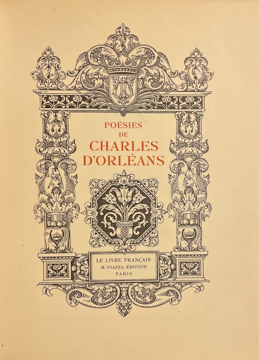 CHARLES D’ORLEANS Poésies. Paris, Le Livre Français – Piazza (coll. Les chefs-d’oeuvre de la poésie française), 1926.