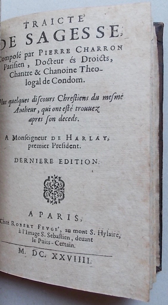CHARRON (Pierre) De la sagesse. Trois livres. A Paris, chez Robert Fuge, 1630.