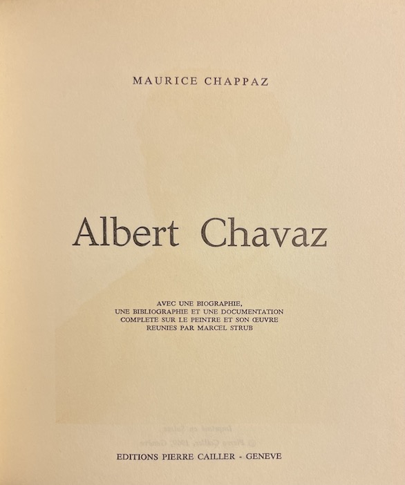 [CHAVAZ] – CHAPPAZ (Maurice) Albert Chavaz. Genève, Pierre Cailler (coll. Peintres et sculpteurs d’hier et d’aujourd’hui), 1969.