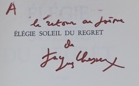 CHESSEX (Jacques) Elégie soleil du regret. Vevey, Bertil Galland, 1976.