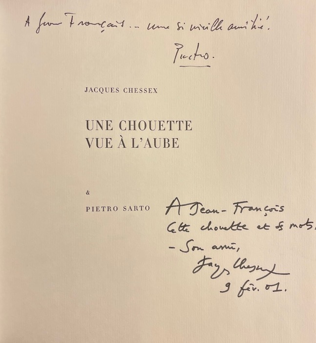 CHESSEX (Jacques) & SARTO (Pietro) Une chouette vue à l’aube. Lausanne, Chabloz (coll. [Remarques] – série 1, 2001.