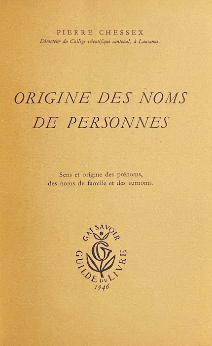 CHESSEX (Pierre) Origine des noms de personnes. Lausanne, Guilde du Livre (coll. Le Gai Savoir), 1946.