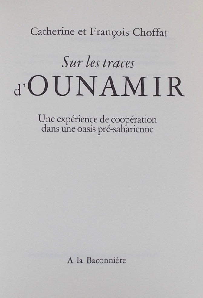 CHOFFAT (Catherine & François) Sur les traces d’Ounamir. Une expérience de coopération dans une oasis pré-saharienne. Neuchâtel, Baconnière, 1978.