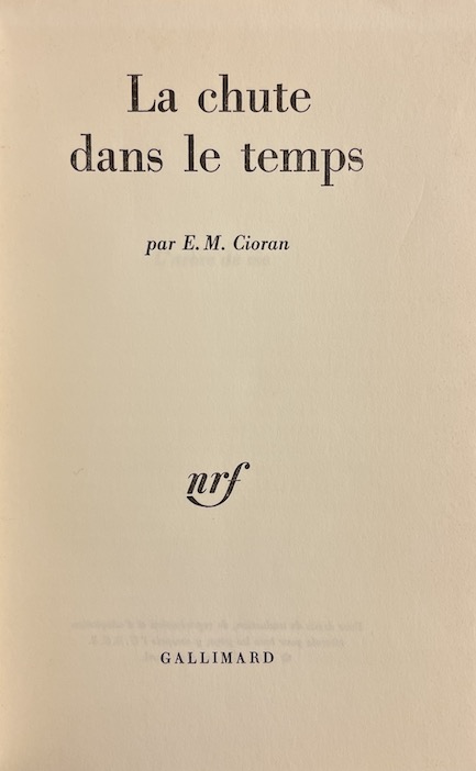 CIORAN (E. M.) La chute dans le temps. Paris, Gallimard (coll. Les Essais), 1964.