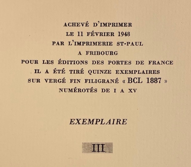 | Lieu d'éd. - Editions - Achevé d'imprime | Porrentruy, Aux Portes de France, 1948. |