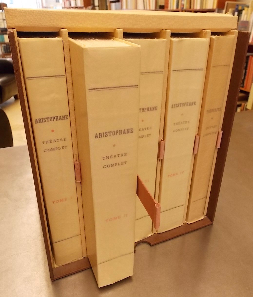 [CLEMENT (Charles)] – ARISTOPHANE – THEOCRITE Théâtre complet. Oeuvres complètes. Paris, Union Latine d’Editions & Lausanne, Editions du Bibliophile, 1946-1947.