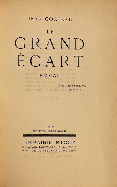 COCTEAU (Jean) Le grand écart. Paris, Stock, 1923.