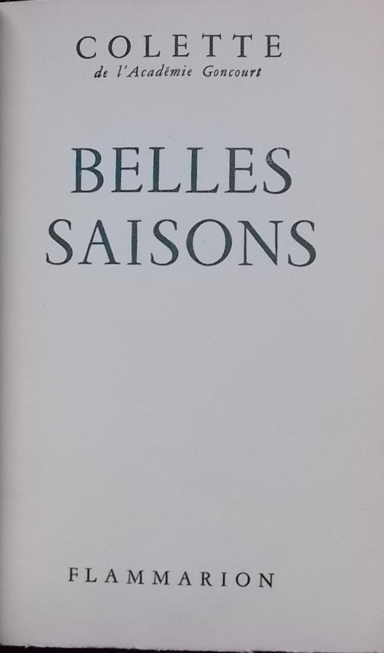 COLETTE (Gabrielle Sidonie) Belles saisons. Paris, Flammarion, 1955.