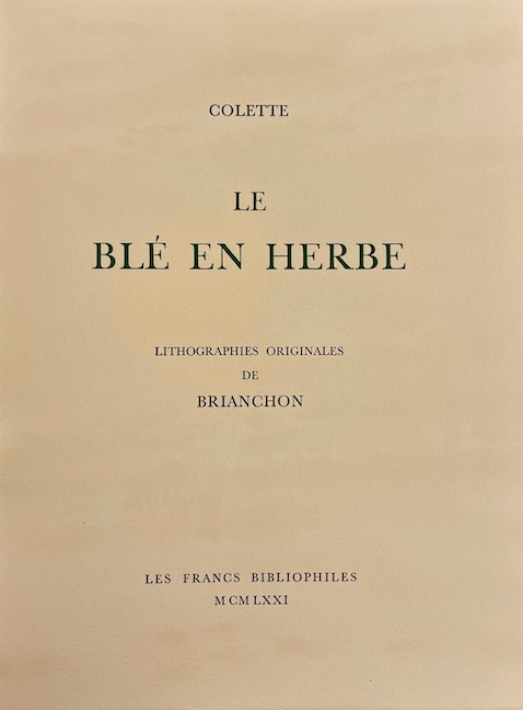 COLETTE Le blé en herbe. Lithographies originales de Brianchon. Paris, Les Francs-Bibliophiles, 1971.