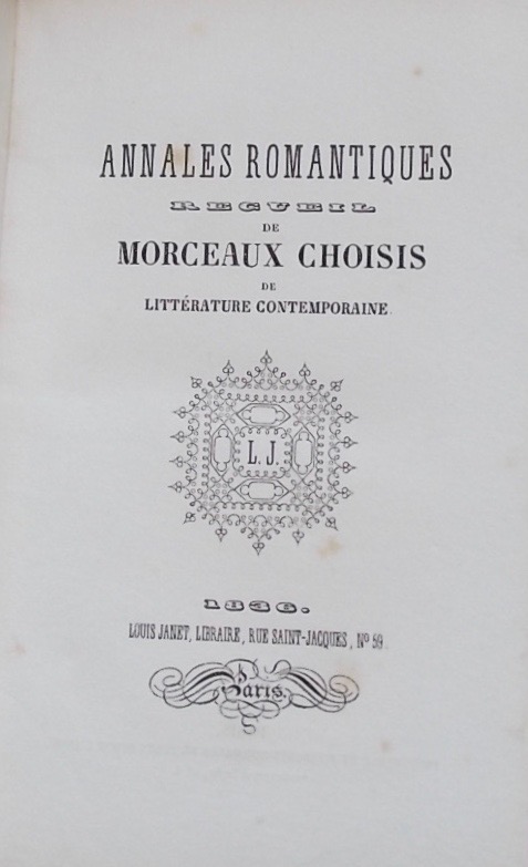 COLLECTIF Annales romantiques. Recueil de morceaux choisis de littérature contemporaine. Paris, Louis Jeanet, (1836).