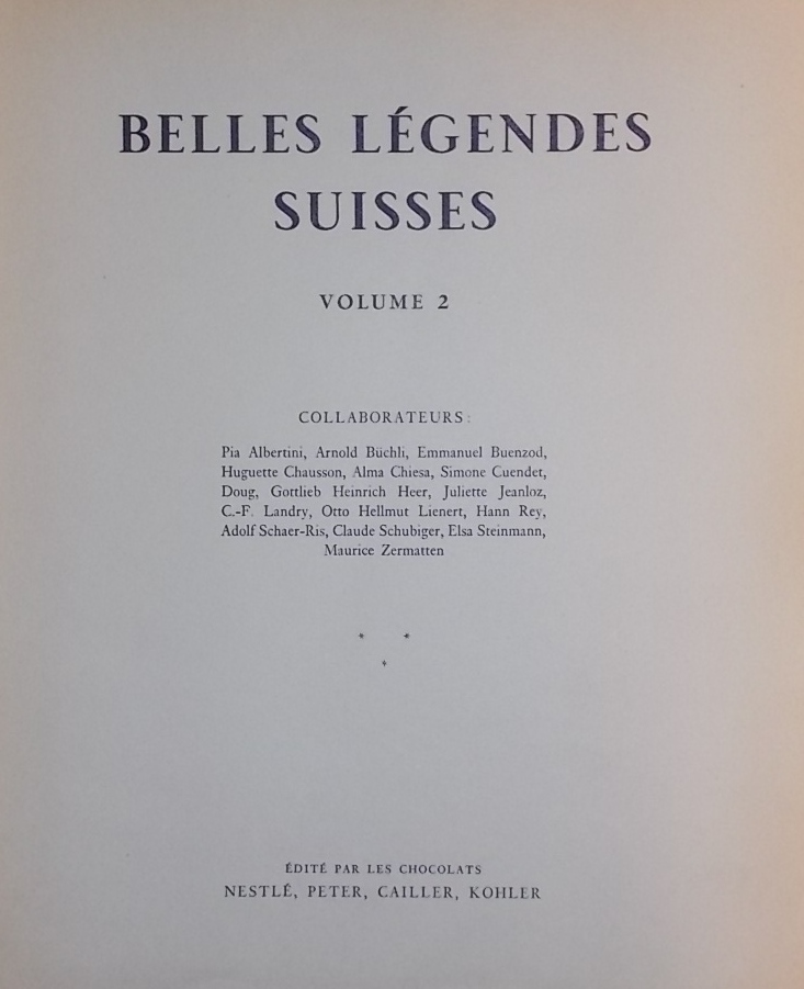 COLLECTIF Belles légendes suisses – Volume 2. Vevey, Chocolats Nestlé, Peter, Cailler, Kohler, 1955.