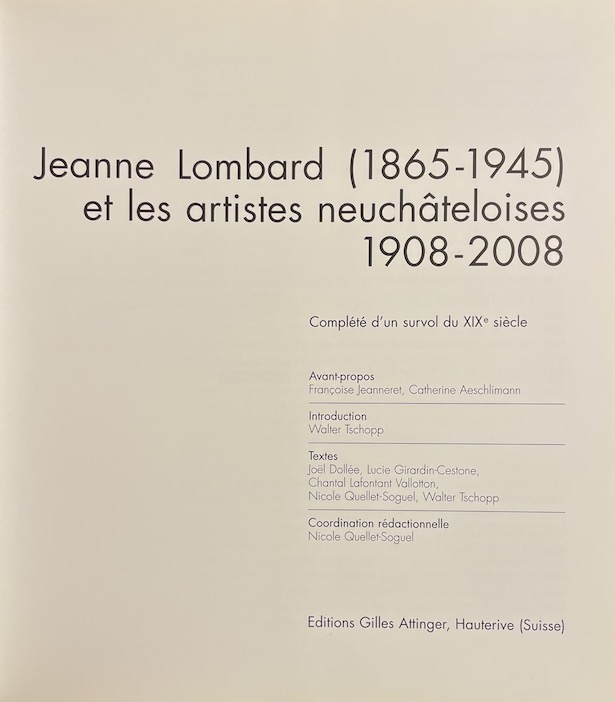 COLLECTIF Jeanne Lombard(1865-1945) et les artistes neuchâteloises 1908-2008. Hauterive, Gilles Attinger, 2008.