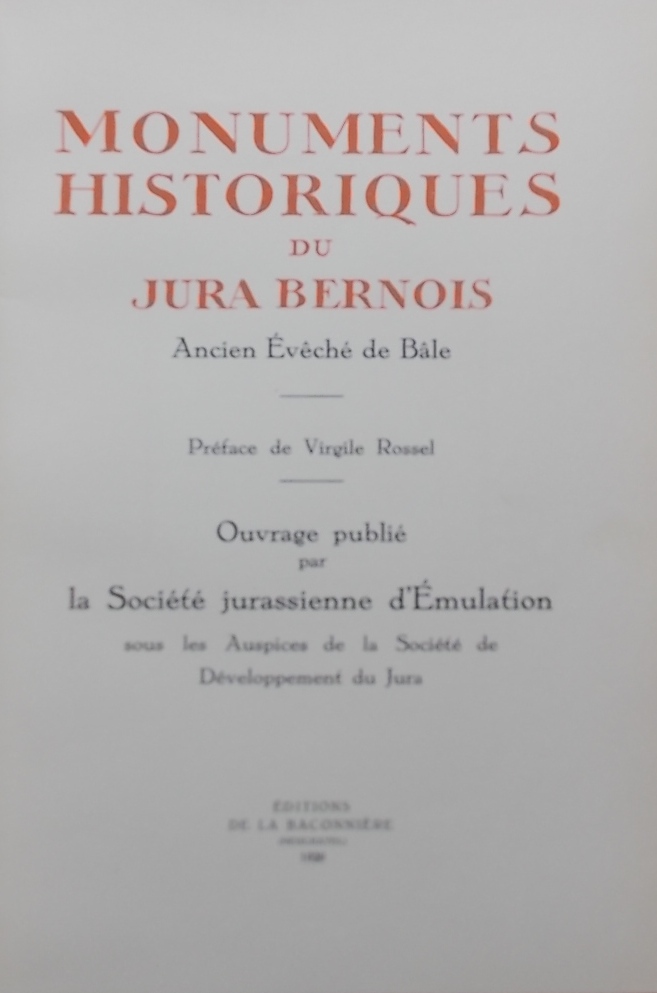 COLLECTIF Monuments historiques du Jura Bernois, Ancien Evêché de Bâle. Neuchâtel, Baconnière, 1929.