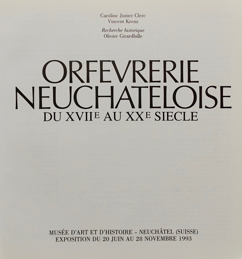 COLLECTIF Orfevrerie neuchâteloise du XVIIe au XXe siècle. Neuchâtel, Musée d’Art et d’Histoire, 1993.