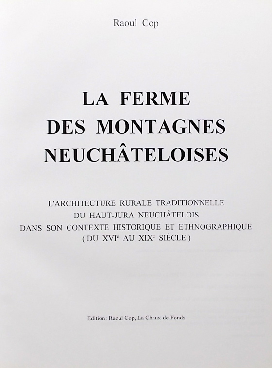 ![COP (Raoul) La ferme des Montagnes neuchâteloises. L'architecture rurale traditionnelle du Haut-Jura neuchâtelois dans son contexte historique et ethnographique (du XVIe au XIXe siècle). La Chaux-de-Fonds, Raoul Cop, [1995]. – Image 3](https://cabinetamateur.ch/wp-content/uploads/2025/11/40571_3.jpg)