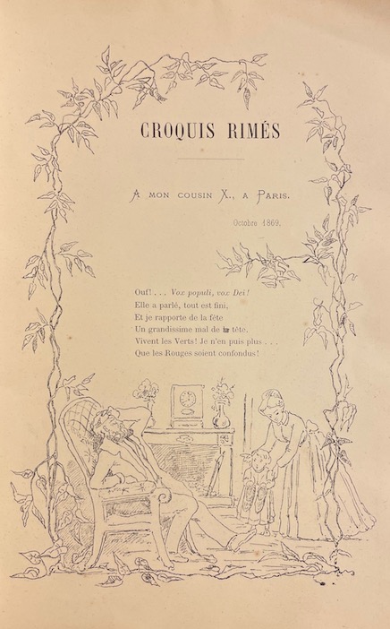 [COULON (Henry)] Petite revue neuchâteloise. Croquis rimés. Lettres à mon cousin X… à Paris. Neuchâtel, Impr. James Attinger, 1869.