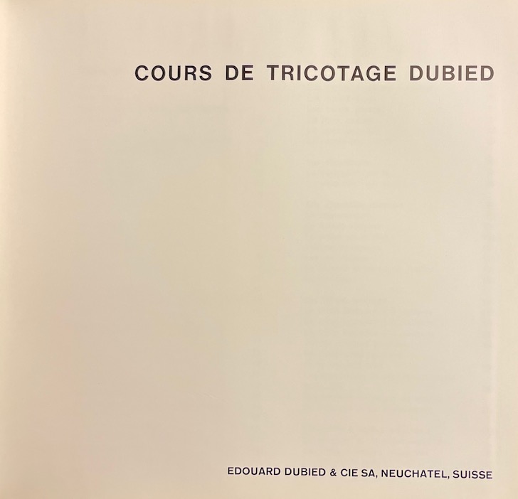 *** Cours de tricotage Dubied. Neuchâtel, Edouard Dubied & Cie SA, 1967.
