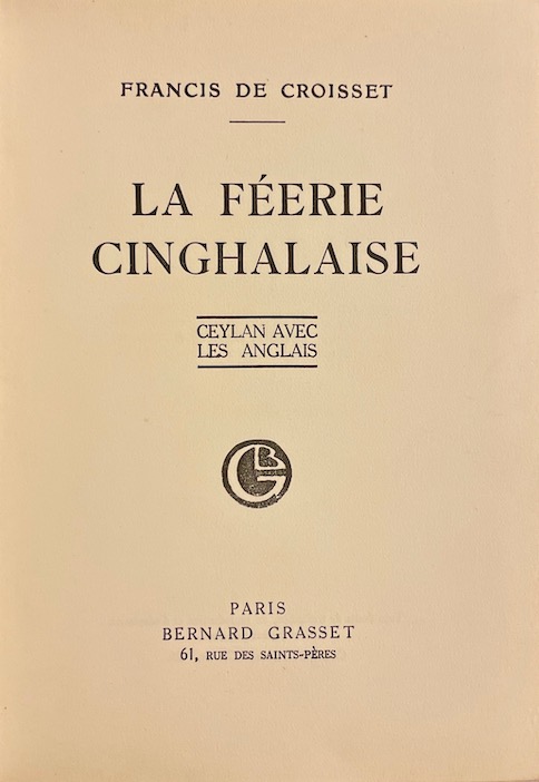 CROISSET (Francis de) La féerie cinghalaise. Ceylan avec les anglais. Paris, Grasset, 1929.