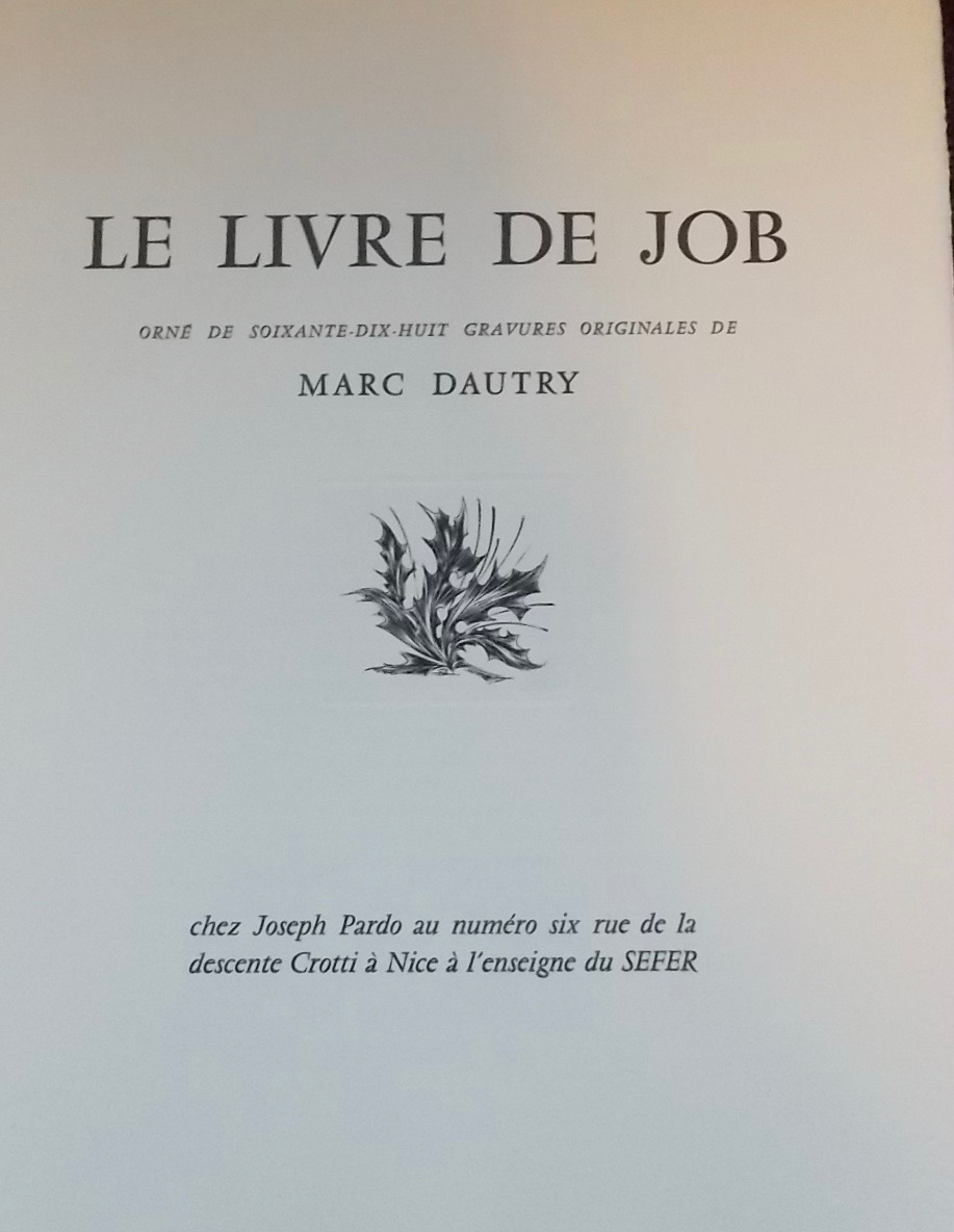 [DAUTRY (Marc) ill.] Le Livre de Job. Nice, Joseph Prado à l’enseigne du SEFER, 1961.