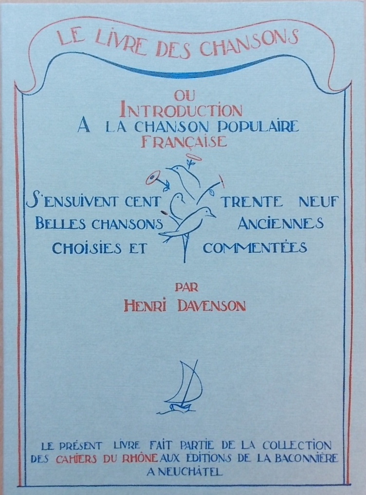 DAVENSON (Henri) Le livre des chansons, ou introduction à la chanson populaire française. Neuchâtel, Baconnière, 1982.