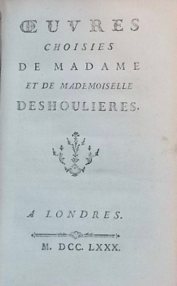 ![DESHOULIERES (Antoinette de la Garde) Oeuvres choisies de Madame et de Mademoiselle Deshoulières. Londres, [Cazin], 1780.](https://cabinetamateur.ch/wp-content/uploads/2025/11/33543_1.jpg)
