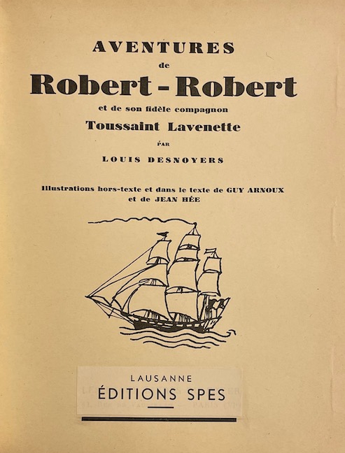 DESNOYERS (Louis) Aventures de Robert-Robert et de son fidèle compagnon Toussaint Lavenette. Lausanne, Spes, 1929.
