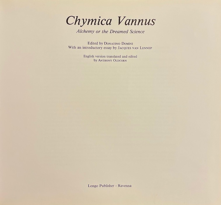 DOMINI (Donatino) Chymica Vannus: Alchemy or the Dreamed Science. Ravenna, Longo Publisher, 1986.