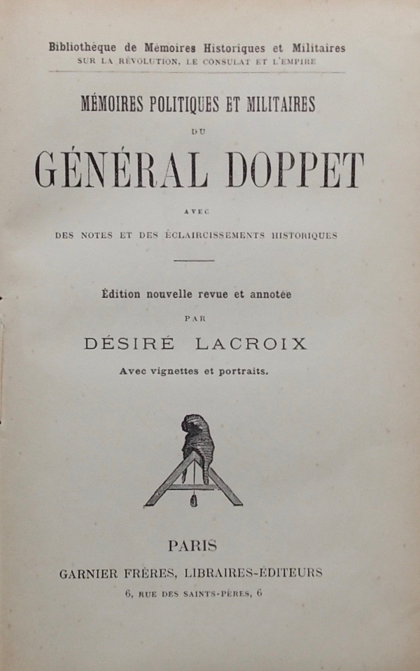 ![DOPPET (François-Amédée, général) Mémoires politiques et militaires du général Doppet, avec des notes et des éclaircissements historiques. Paris, Garnier Frères, [1902]. – Image 2](https://cabinetamateur.ch/wp-content/uploads/2025/12/38909_2.jpg)