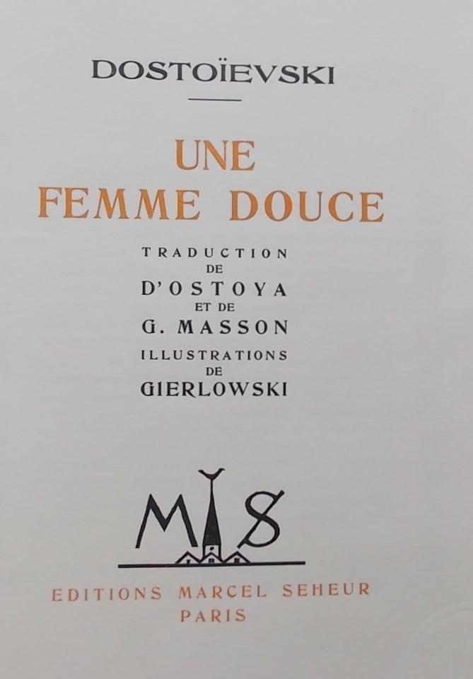 DOSTOÏEVSKI (Fédor) Une femme douce. Paris, Editions Marcel Seheur, 1927.