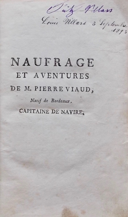 ![[DUBOIS-FONTANELLE (Jean-Gaspard)] Naufrage et aventures de M. Pierre Viaud, Natif de Bordeaux, capitaine de navire. A Bordeaux, chez les Frères La Bottière et à Paris, chez Le Jay, 1770 [en fait 1769]. – Image 2](https://cabinetamateur.ch/wp-content/uploads/2025/11/35718_2.jpg)