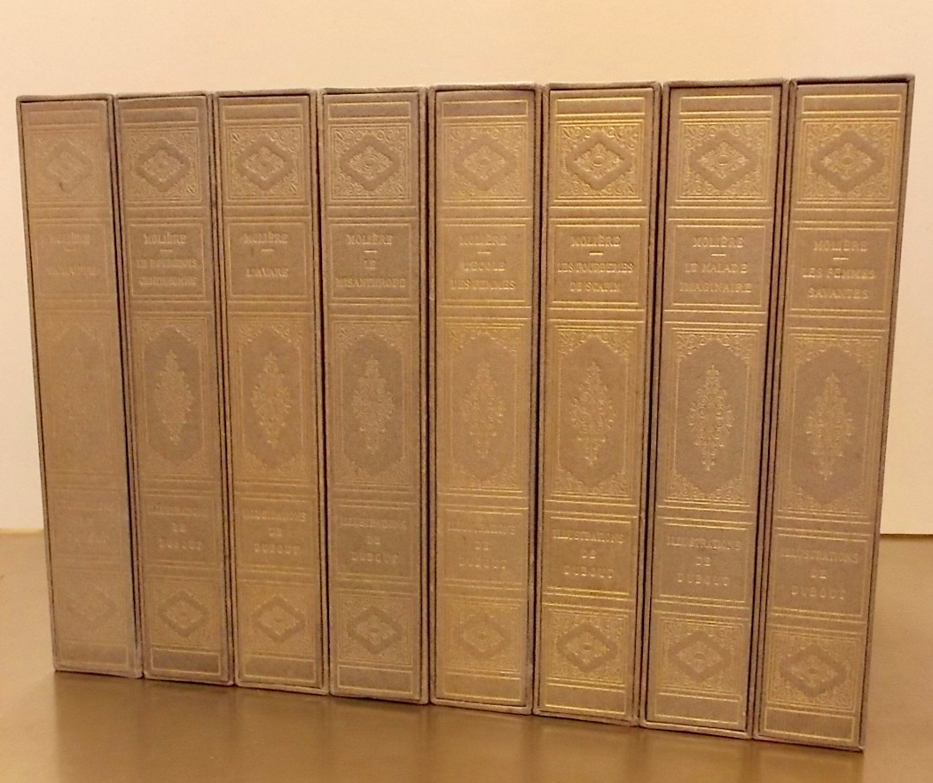 DUBOUT / MOLIERE Oeuvres diverses. [Tartuffe – Le bourgeois gentilhomme – Les femmes savantes – L’avare – Le malade imaginaire – L’école des femmes – Le misanthrope – Les fourberies de Scapin] Paris, Sauret, 1953-1955.