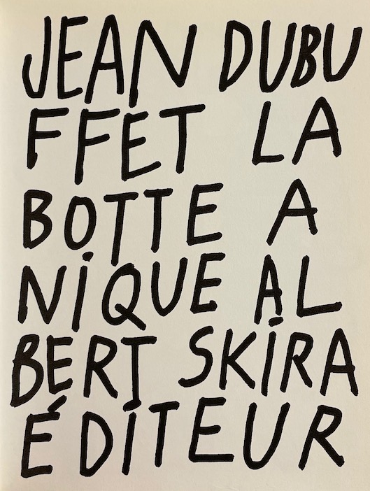 DUBUFFET (Jean) La botte à nique. Genève, Skira (coll. Les sentiers de la création), 1973.