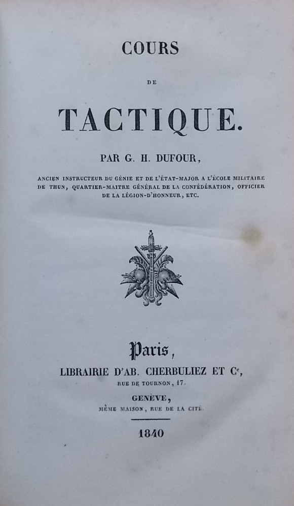 DUFOUR (Guillaume-Henri) Cours de tactique. Paris et Genève, Cherbuliez & Cie, 1840.