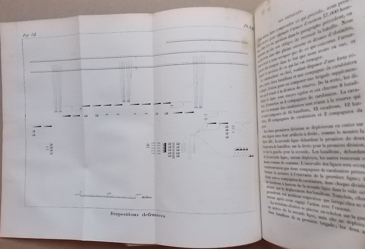Première édition. Avec 21 planches lithographiées de plans et de formations militaire. Des rousseurs, sinon bon exemplaire de ce classique de la stratégie militaire.