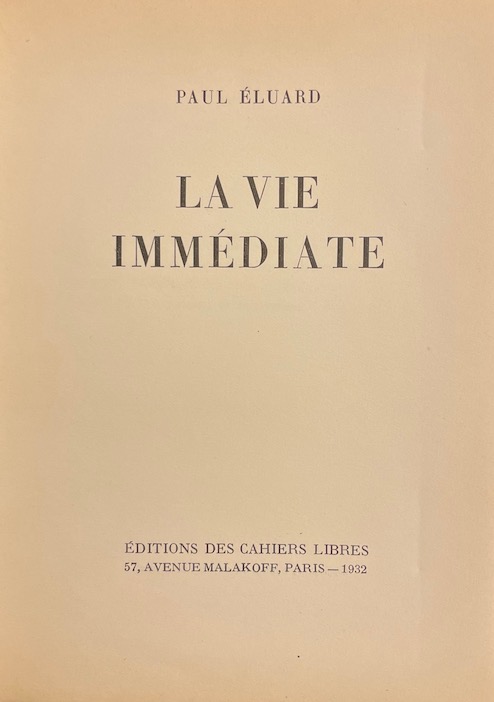 ELUARD (Paul) La vie immédiate. Paris, Editions des Cahiers Libres, 1932.