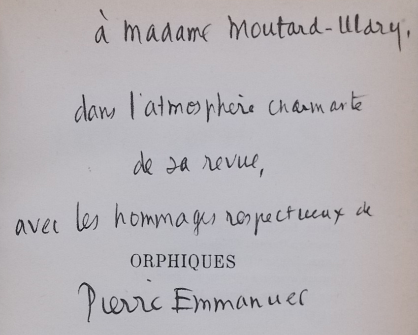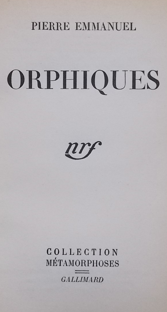 EMMANUEL (Pierre) Orphiques. Paris, Gallimard (coll. Métamorphoses), 1942.